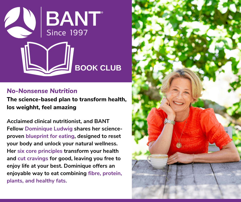 BANT Book Club Celebrates the launch of BANT Fellow Dominique Ludwig (Barklett)‘s book, No-Nonsense Nutrition.